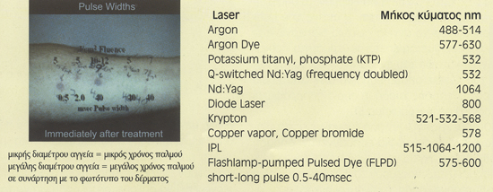 με μικρό χρόνο παλμού, 0.5msec, τα τριχοειδή αγγεία καταστρέφονται ακαριαία,