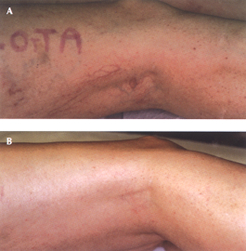 - ουλή, ατροφική, ή πολύ σπάνια υπερτροφική.