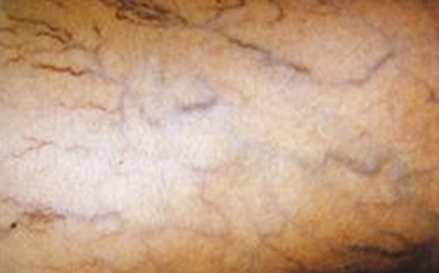 (ερυθρή χροιά) και μικροί ή δικτυωτοί κιρσοί (κυανή χροιά).