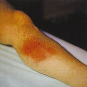 από διάχυτη ερυθρότητα του δέρματος, λόγω οξείας φλεγμονής, και από ευαισθησία.
