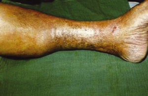 ουλής και/ή σύσπαση. Αποτελεί σημείο σοβαρής φλεβικής νόσου και χαρακτηρίζεται