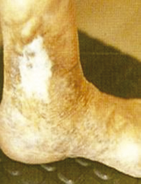 Το δέρμα αποκτά μια σκούρα καστανή χρώση στην περιοχή των σφυρών, αλλά μπορεί