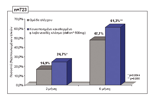 improvEment with micronized Flavonoids) έδειξε ότι το 78% των ασθενών με συμπτώματα
