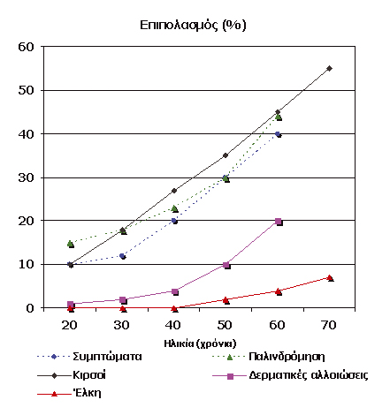 Τα συμπτώματα, η παλινδρόμηση, οι κιρσοί, οι δερματικές αλλοιώσεις και τα φλεβικά
