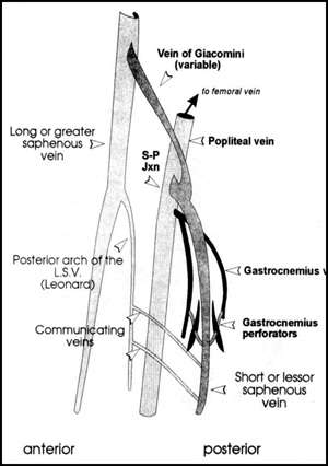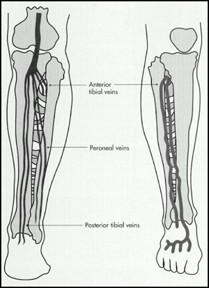 περονιαίες φλέβες, οι οποίες είναι όλες τυφλές, φέρουν βαλβίδες και εκβάλλουν