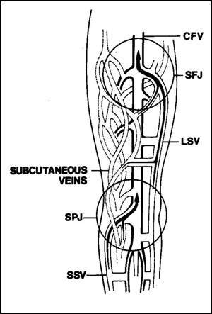 1. Από τις υποδόριες φλέβες (εικόνα 23) στη μείζονα και ελάσσονα σαφηνή και