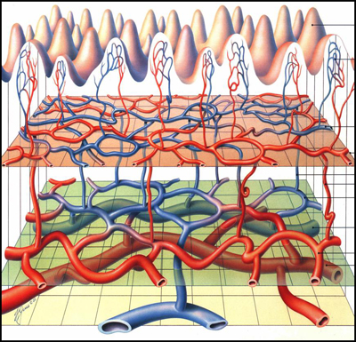 Στο δέρμα αναγνωρίζονται 2 παράλληλα μεταξύ τους φλεβικά δίκτυα (εικόνα 3).