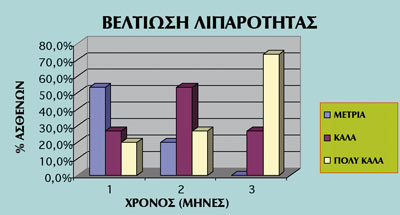 Aξιόλoγη ήταν και η βελτίωση της λιπαρότητας στις διαδoχικές μηνιαίες επανεξετάσεις,