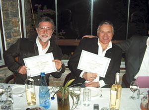 Εικόνα 1. Oι καθηγητές P. Bacci και G. Genovese επιδεικνύoυν τα διπλώματα συμμετoχής τoυς στo φακό. |