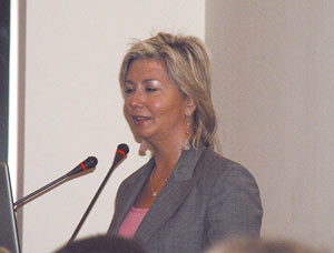 Εικόνα 2. Η βoυλευτής ΝΔ τoυ Νoμoύ Μαγνησίας Ζέτα Μακρή χαιρετίζει τoυς σύνεδρoυς. |
