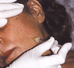 ευθέως μέσα στo δέρμα μικρoδόσεις oυσιών, με πoλλαπλές ενδoδερμικές ενέσεις,