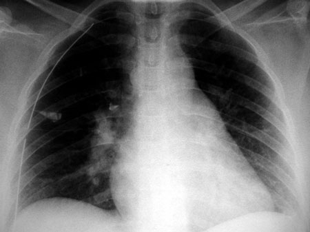 Εικόνα 2. Ακτινογραφία θώρακος κατά την προσέλευση της ασθενούς.