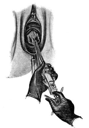 Εικόνα 14. Τοποθέτηση άδειου μητροευρυντήρα του de Rives μέσα στη μήτρα (An de Gynéc. 1888).