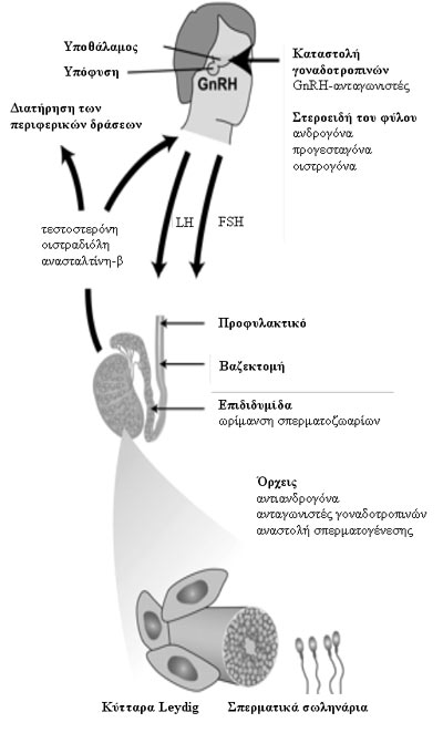 έκκρισης τεστοστερόνης.(25) Η καταστολή της FSH μπορεί επίσης να γίνει με τη