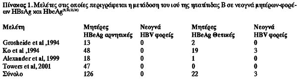 τη σύγχρονη βιβλιογραφία. Η κάθετη μετάδοση του ιού της ηπατίτιδας Β συμβαίνει
