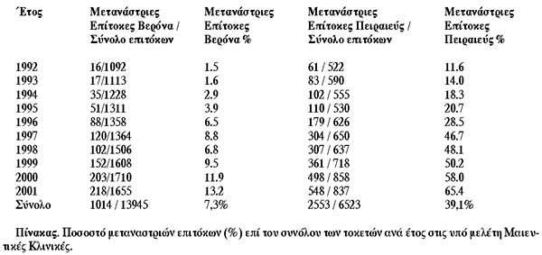 Όροι ευρετηρίου: Επίτοκες, μετανάστριες, ποσοστιαία μεταβολή, σύνθεση μαιευτικού πληθυσμού.