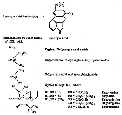 που είναι παράγωγα του λυσεργικού οξέος. Η εργοτίνη εκτός των αλκαλοειδών περιέχει