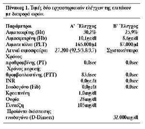 ενδαγγειακής πήξης, καθώς και των εργαστηριακών εξετάσεων που απαιτούνται για