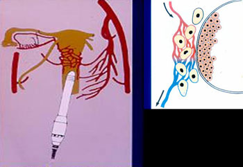 η σχέση της κολπικής κεφαλής υπερήχων με τα αγγεία των έσω γεννητικών οργάνων.