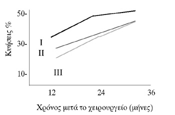 12, 24 και 36 μήνες μετά τo χειρoυργείo στην oμάδα I (Fenestration),
