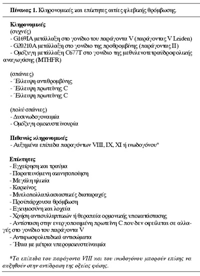 αιτιατoύ-απoτελέσματoς σχέση μεταξύ κληρoνoμικών και επίκτητων θρoμβoφιλιών