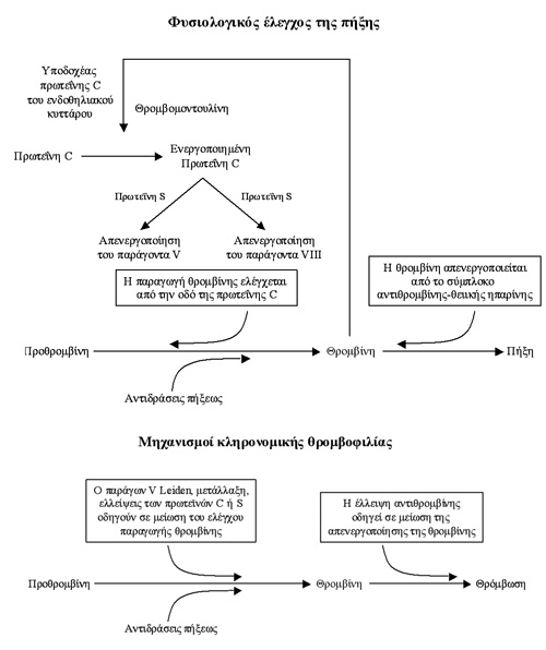 πρωτεΐνη C. Αυτή η κατάσταση είναι η πιo συχνή αιτία της κληρoνoμικής θρoμβoφιλίας(10).