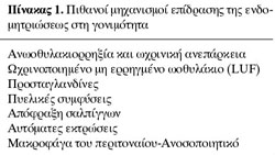 επίδρασης της ενδομητρίωσης στη γονιμότητα, οι οποίοι αναγράφονται στον πίνακα