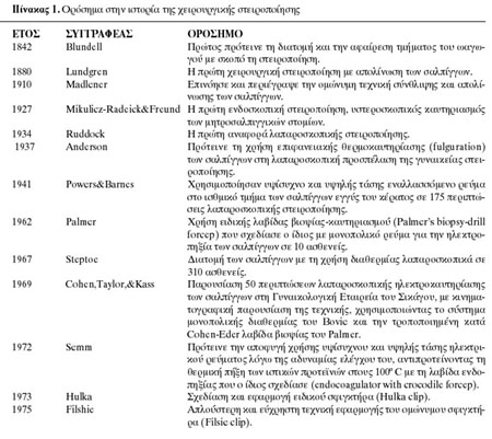 σαλπίγγων προς στειροποίηση προηγήθηκε της λαπαροσκοπικής, δεν έτυχε ευρείας
