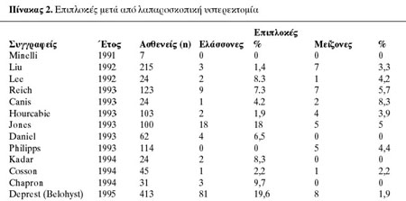 τα ποσοστά των επιπλοκών, ο χρόνος της επέμβασης και η μετατροπή σε κοιλιακή