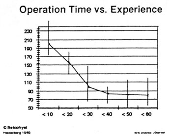 Σχήμα 4. Διάρκεια λαπαροσκοπικής υστερεκτομίας σε σχέση με την εμπειρία (από