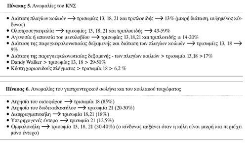 στους πίνακες 2, 3 και 4 τις υπερηχογραφικές ανωμαλίες που μπορεί να προκαλέσουν