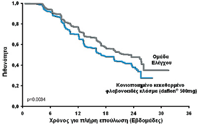 Αγωγή με τo κoνιoπoιημένo κεκαθαρμένo φλαβoνoειδές κλάσμα (2 δισκία την ημέρα)