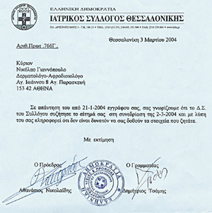 for dermatologists. No Greek Dermatologist has been by now involved in any death