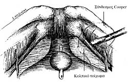 σημείο κάτωθεν της ηβικής σύμφυσης. Στη συνέχεια τοποθετούνται 3 ράμματα 3/0
