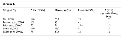πίνακα 1. Aν και η μέθοδος θα πρέπει να αξιολογηθεί με προοπτικές τυχαιοποιημένες