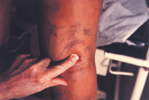 The leg telangiectasias is caused by a number of factors: Heredity, hormonal factors and pregnancy, natural or mechanical causes, etc. Diagnosis must be made by physical examination and with instru-ments, in order to separate telangiectasia caused by order circularory problems. Eco Doppler is very helpful. For the treatment the most important thing is to cope with its cause.