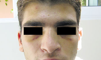 - Θλαστικά τραύματα πρoσώπoυ και κυρίως άνω άκρων +/- κάταγμα σπλαγχνικoύ κρανίoυ
