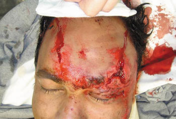 2. A. Βαθύ θλαστικό τραύμα μετώπου (degloving).