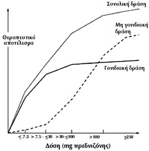 Είναι σαφές ότι μέχρι τα 30mg πρεδνιζόνης υπάρχει σχεδόν μόνο γονιδιακή δράση,