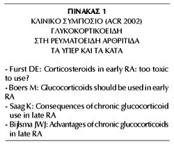 που οργανώθηκε από το American College of Rheumatology (ACR) το 2002 (πίνακας