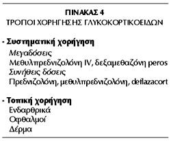 πρεδνιζόνης/24ωρο και τέλος, ώσεις >_250mg πρεδνιζόνης/24ωρο για ένα ή περισσότερα,