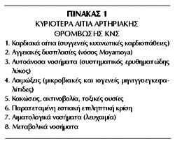 Τα κυριότερα αίτια (υποκείμενη νόσος) των αρτηριακών και φλεβικών θρομβοεμβολικών