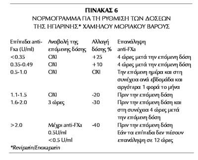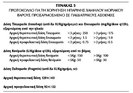 των δόσεων της ηπαρίνης χαμηλού μοριακού βάρους αναπτύσσεται στους πίνακες 5