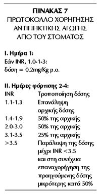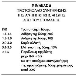 αντιπηκτικής αγωγής είτε από του στόματος (INR 1.5-1.8), είτε χαμηλού μοριακού