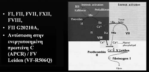 - FI, FII, FVII, FXII, FVIII, FII G20210A, αντίσταση στην ενεργοποιημένη πρωτεΐνη