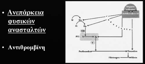 - Ανεπάρκεια φυσικών ανασταλτών: αντιθρομβίνης (σχήμα 2), - Πρωτεΐνης C και