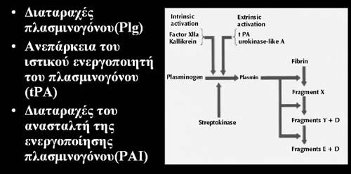 - Διαταραχές του πλασμινογόνου (Plg), ανεπάρκεια του ιστικού ενεργοποιητή του