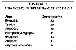 παιδιά είναι ποικίλα (πίνακας 1). Στο 25% περίπου των περιπτώσεων δεν ανευρίσκεται