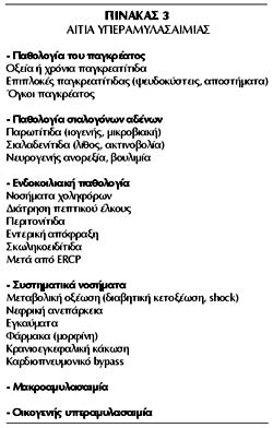 βρεθούν και σε άλλες καταστάσεις εκτός της παγκρεατίτιδας (πίνακας 3). Η αμυλάση