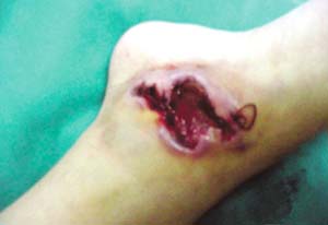 έκτασης τραύμα του δέρματος. Εξελίσσεται με πόνο, ερύθημα και οίδημα που επεκτείνεται